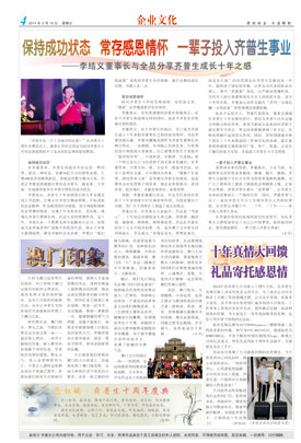 保持成功狀態(tài) 常存感恩情懷 一輩子投入齊普生事業(yè) ——李結義董事長與全員分享齊普生成長十年之感